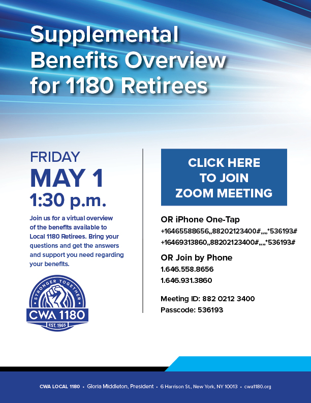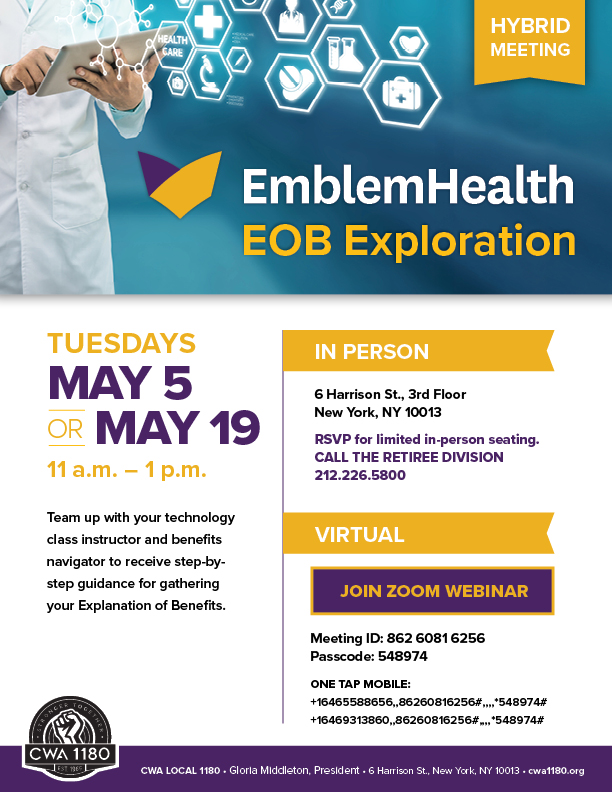Call the Retiree Division to reserve your spot today: 212.226.5800
